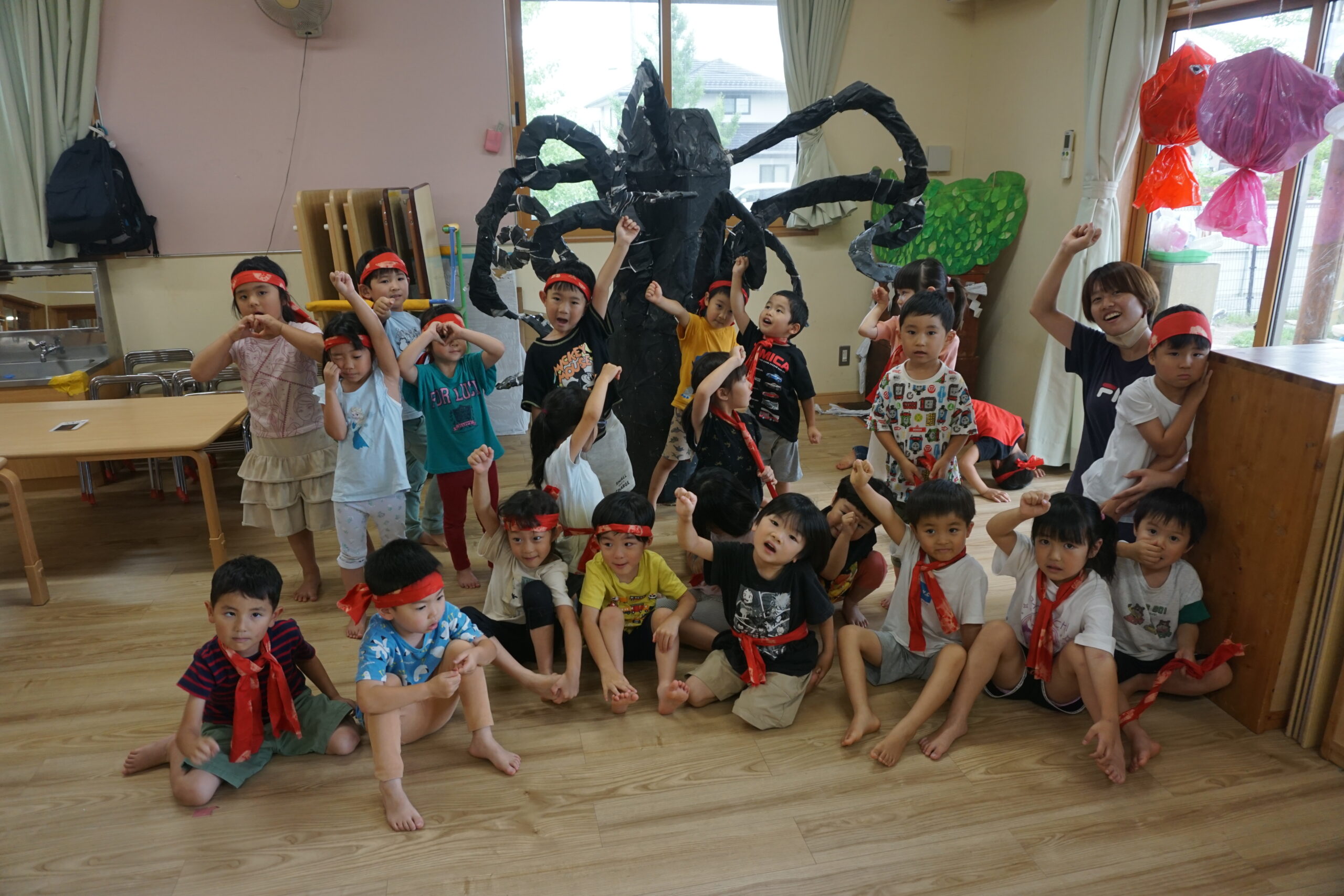 さっそく、保育園に帰ってみんなで切り分け、身に着けてみました!