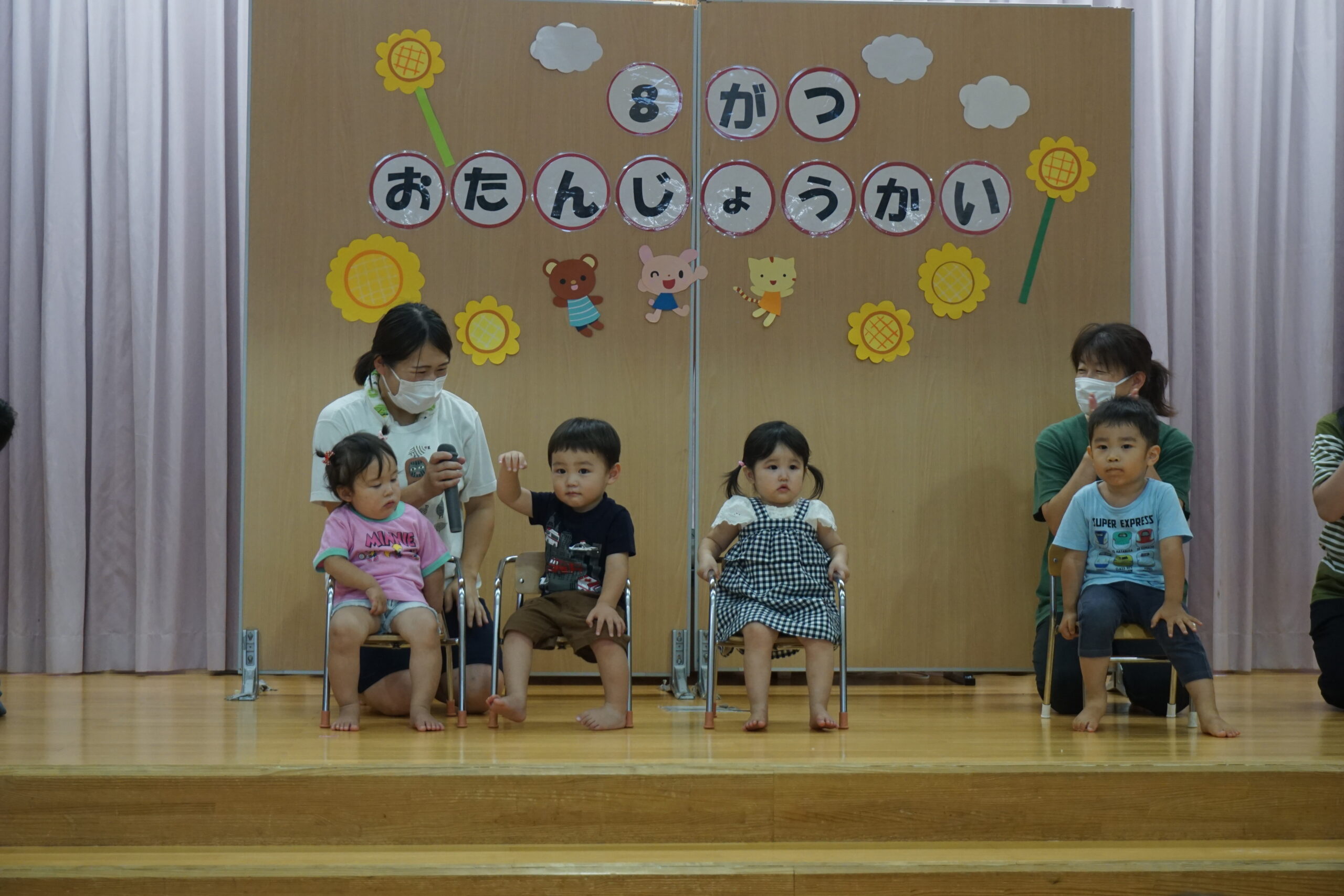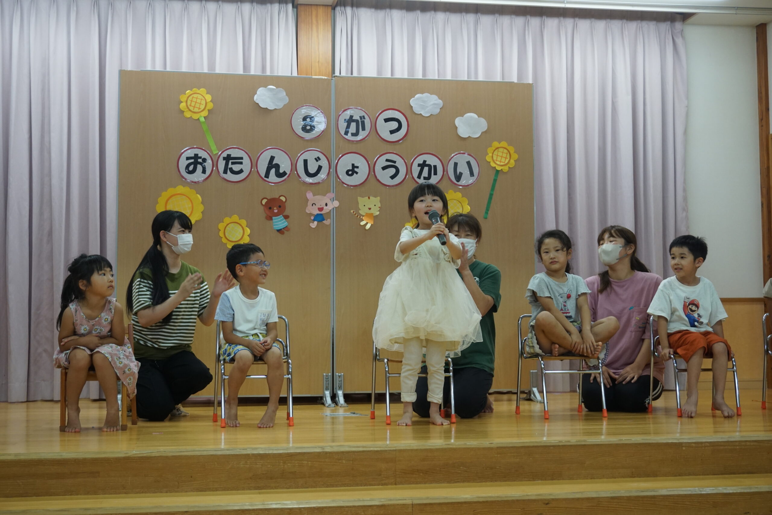 8月生まれのお誕生会は「おばけなんてないさ」の歌で始まりました。
