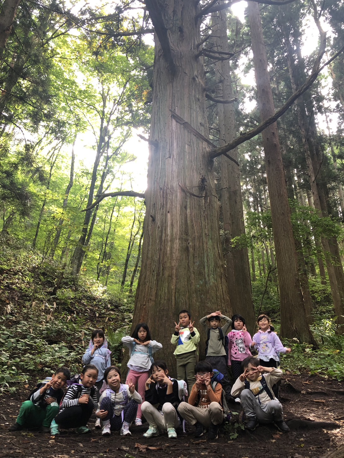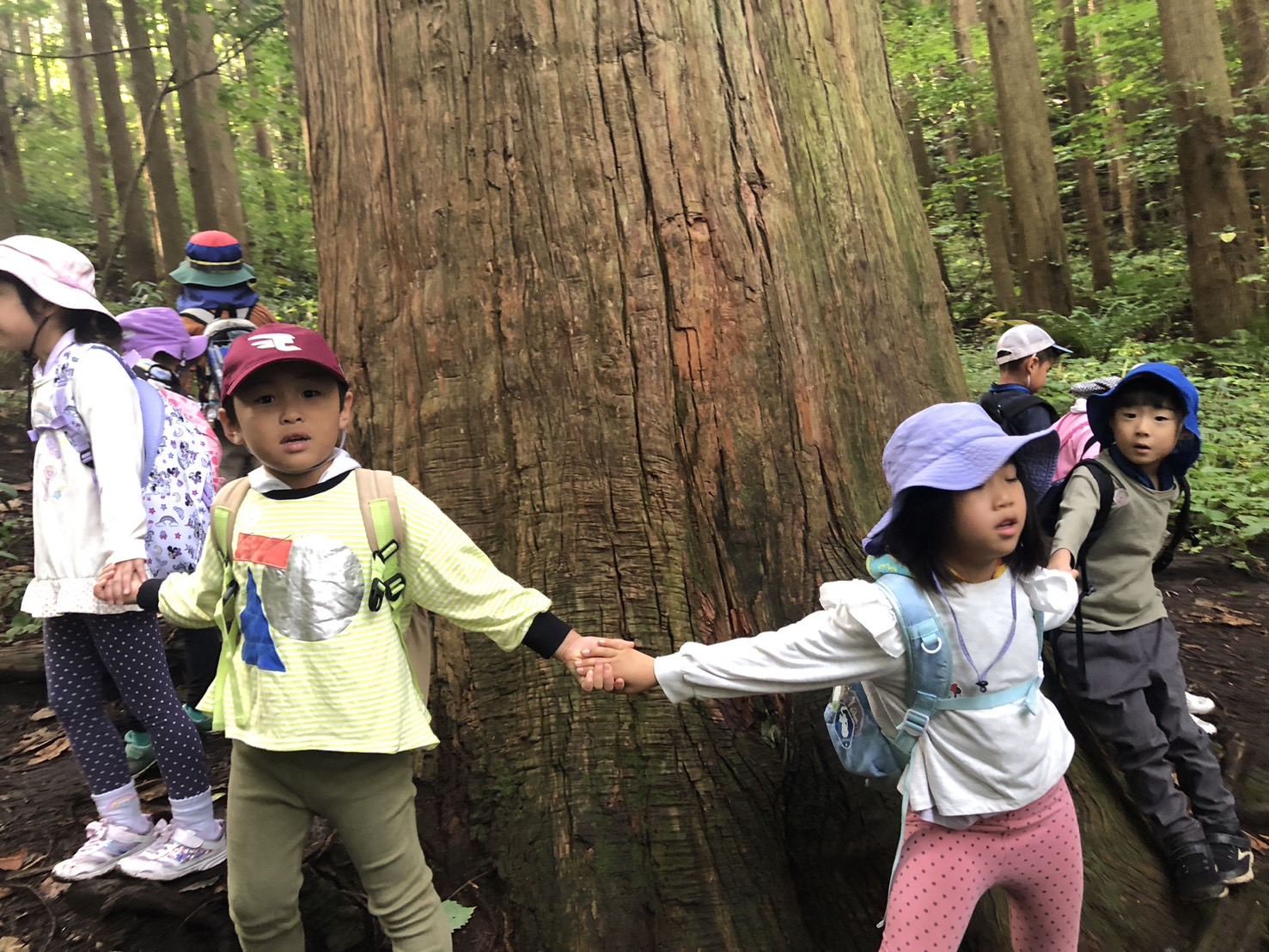 大きな一本杉をみんなで囲みます!