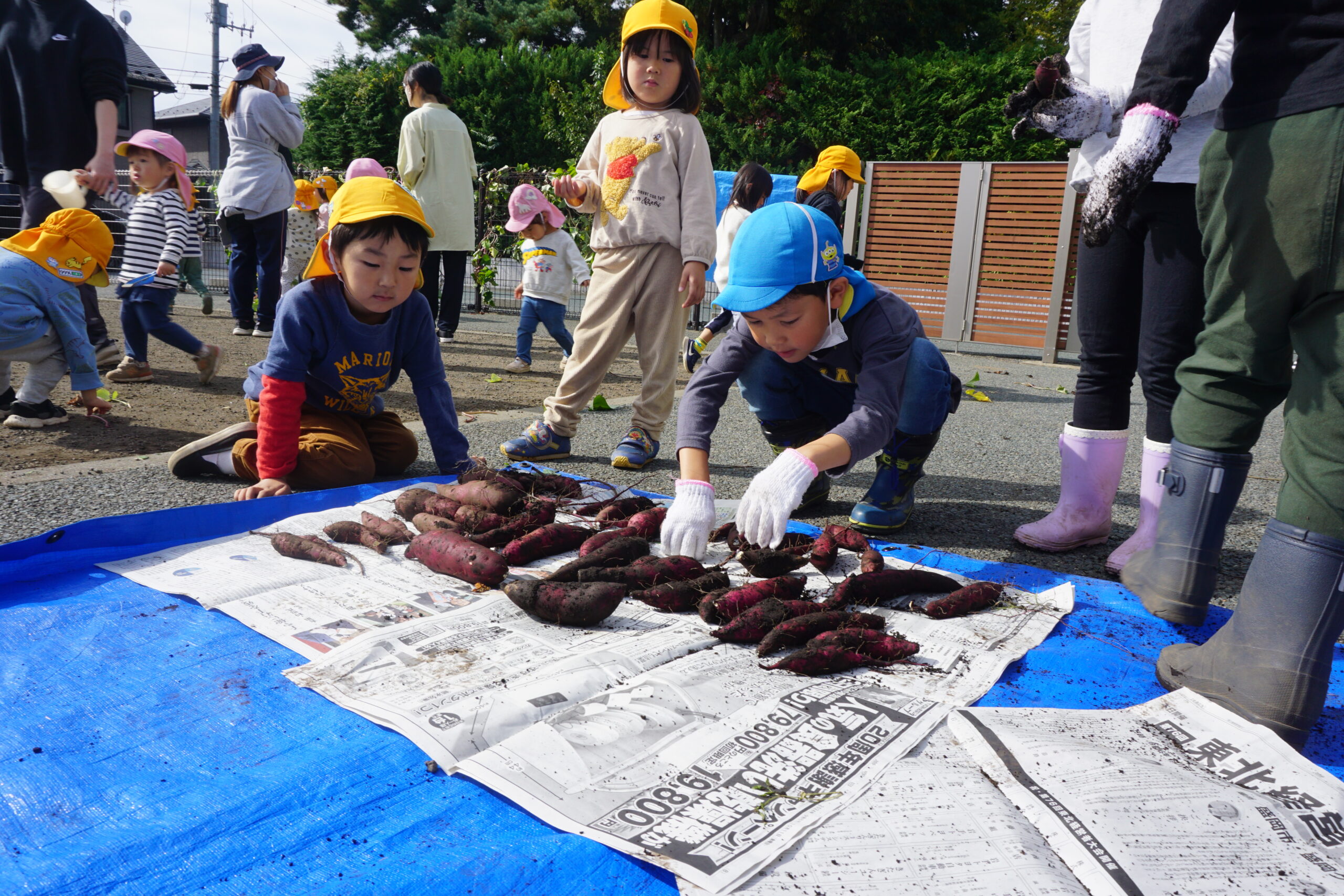 ながい芋、おおきな芋、まるい芋…形が様々なたくさんのさつまいもを収穫することができました。