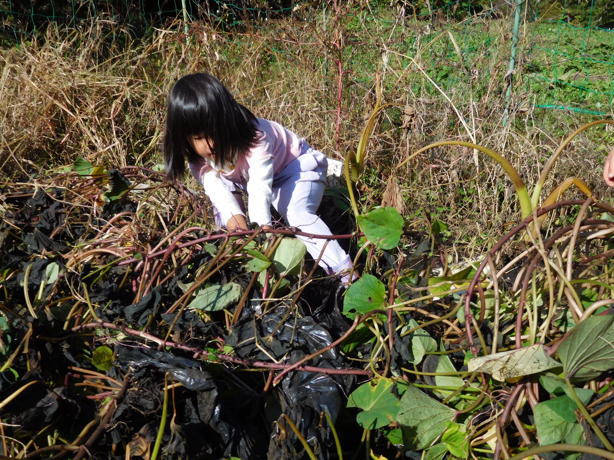 秋晴れのいいお天気の日。楽しみにしていた、さつまいも掘りに出かけました。