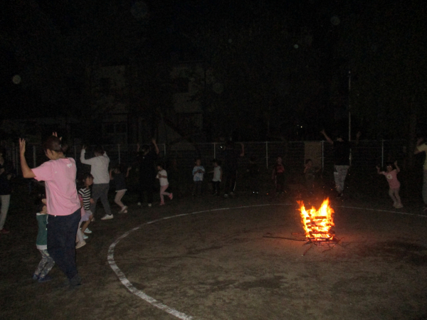 キャンプファイヤーの周りでは、たいようさんから教えてもらった「キャンプだホイ」「タタロチカ」など、いろいろ踊って楽しみましたよ。
